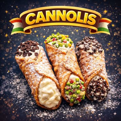 Repicci's traditional Italian pastry made with a crispy, fried pastry dough shell filled with a sweet, creamy ricotta filling. The cannolis are often sprinkled with powdered sugar and topped with chopped nuts or chocolate chips.