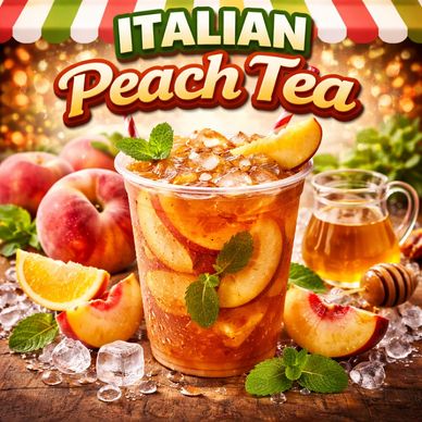 Repicci's Italian peach tea is a sweet, refreshing drink made with tea and a peach flavor. This can be served over ice or served as a hot tea.
